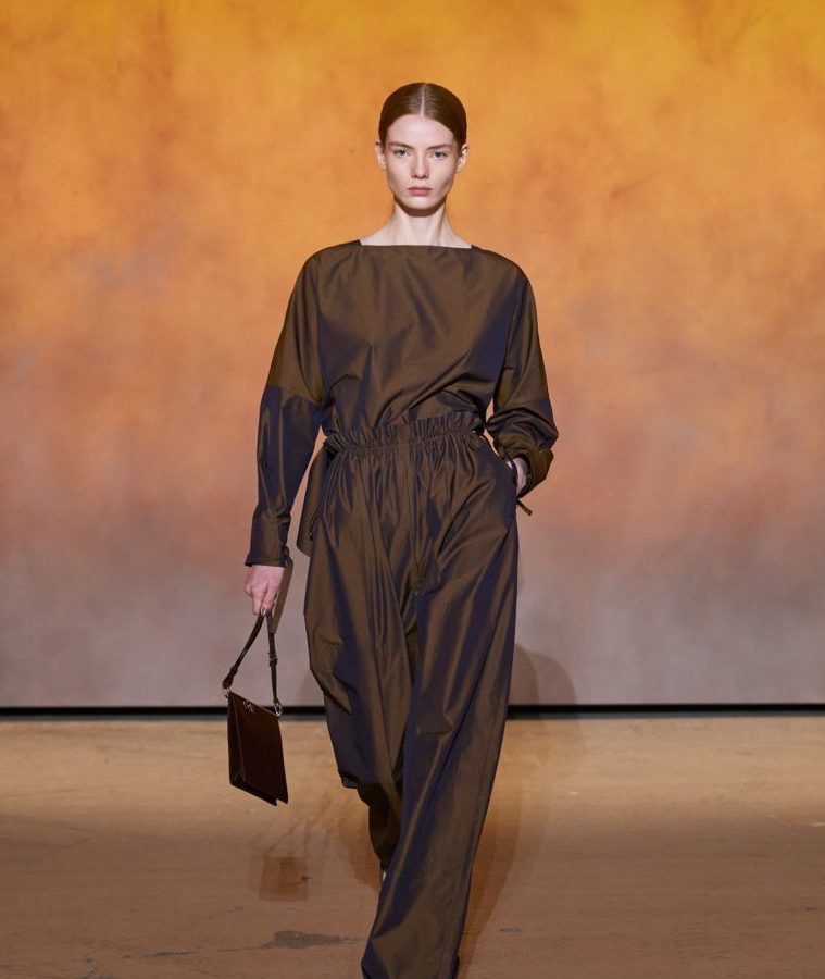 Hermès a présenté, le samedi 2 octobre 2021, sa collection printemps/été 2022 lors de la Fashion Week de Paris. Les mannequins ont défilé à l’aéroport du Bourget face à l’oeuvre de l’artiste Flora Moscovici. La directrice artistique Nadège Vanhee-Cybulski a proposé un vestiaire aux lignes sobres : silhouettes monochromes, pantalons larges, brassières et jupes assorties, manteaux légers, robes midi moulantes et jupes crayons. Une collection élégante et décontractée.