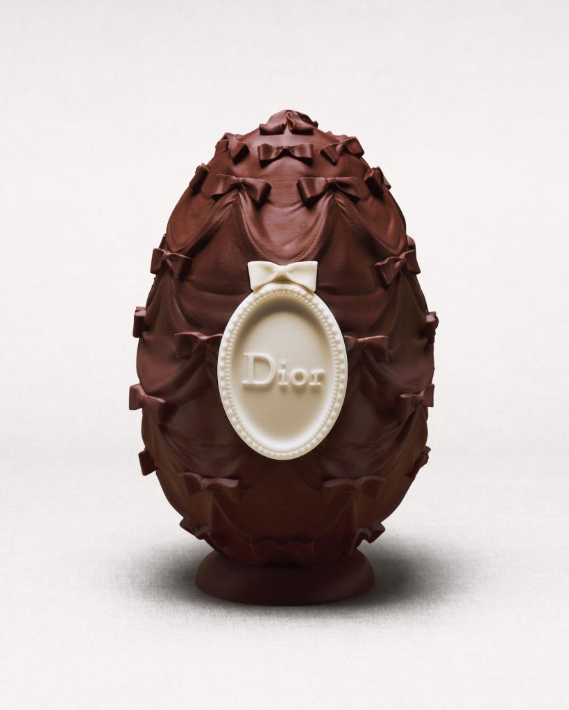 Pour Pâques, Dior révèle un oeuf en chocolat aux proportions inédites. Pensée par le chef multiétoilé Yannick Alléno, cette création, réalisée en chocolat noir et chocolat blanc, s’inspire d’un emblème signature de Christian Dior : le médaillon, ponctué de son noeud irrésistible.